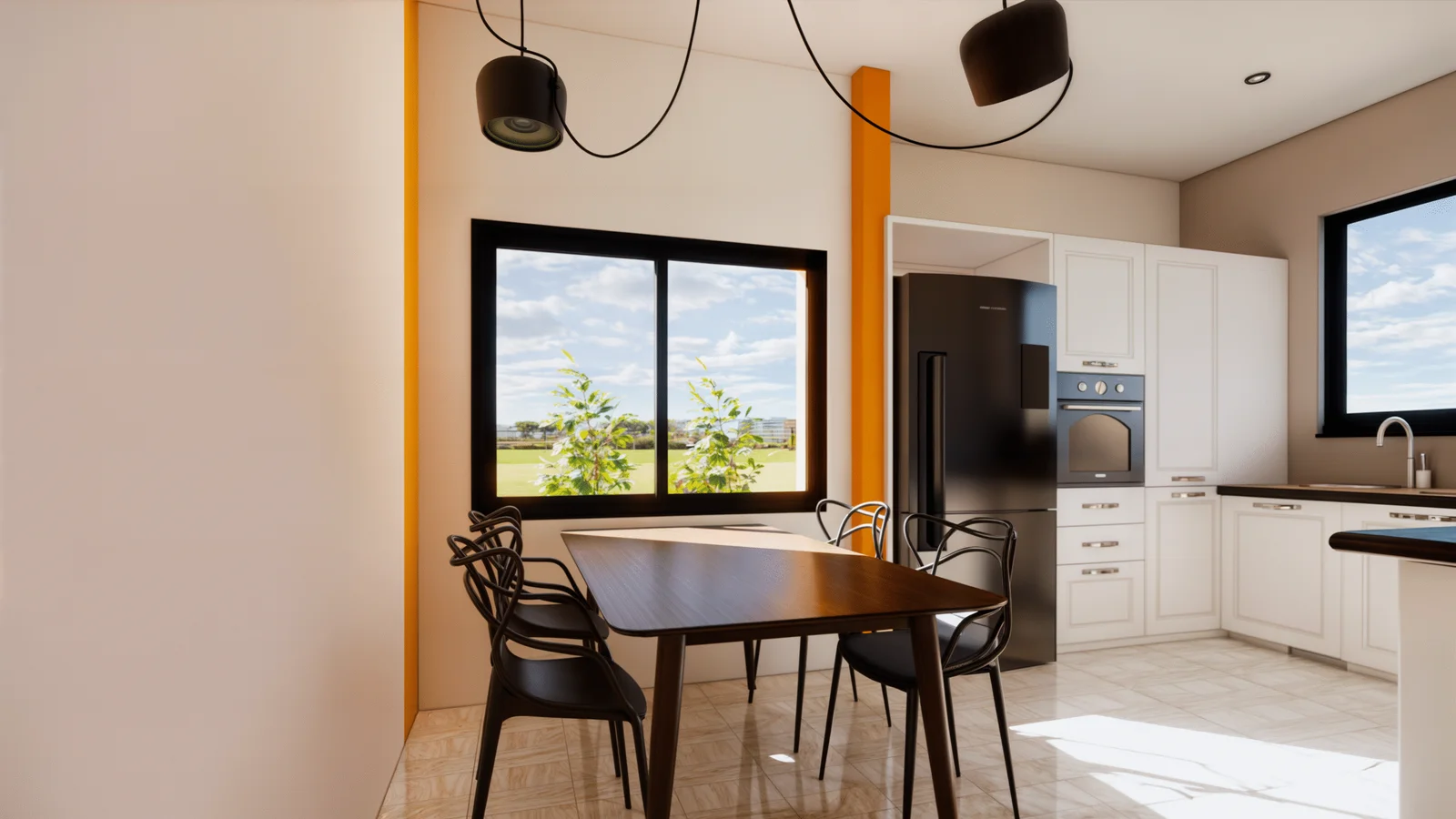 La cuisine moderne, parfaitement intégrée à l’espace salle à manger, transforme chaque repas en moment de convivialité. Équipée d’appareils de qualité et dotée d’un design épuré alliant matériaux durables et optimisation de l’espace, elle répond aux exigences des familles modernes qui refusent les compromis entre style et fonctionnalité. L’agencement intelligent favorise la circulation et les échanges, faisant de cet espace le théâtre de vos moments culinaires les plus mémorables.